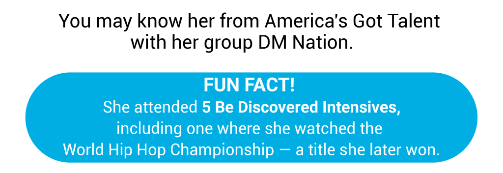 Marie-Odile, from Québec, is an Emmy-nominated choreographer and director of District.Mao. She is the co-founder and performing member of DM Nation, which competed on America’s Got Talent, reaching the quarterfinals. They won World of Dance twice, as well as the World Hip Hop Dance Championship. She attended Be Discovered Intensives in L.A. and Canada and hoste Be Discovered workshops at her studio.
