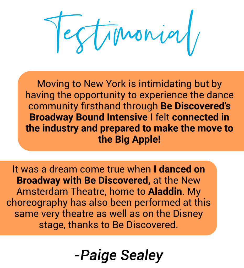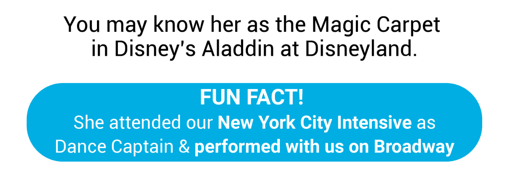 Paige is an award-winning dancer, choreographer, and director from Canada, currently based in New York City. Her career has taken her around the world, performing, teaching, and creating in theme parks, on luxury cruise ships, and on tours. She has taught and choreographed across North America for Be Discovered She also performed with us on Broadway, and in Disney’s Aladdin.